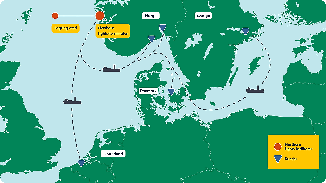 Northern Lights kan betegnes som verdens første grensekryssende, åpne infrastruktur for transport og lagring av CO₂, noe som nå gir selskaper i Europa muligheten til å lagre CO₂ permanent og sikkert. Utbyggingen på land og til havs omfatter mottaksterminal med lagertanker, pumpesystem, kontrollsenter og undervannsinstallasjoner. I tillegg tilbyr Northern Lights kundene frakt av CO₂ fra kunder med spesialbygde skip.
